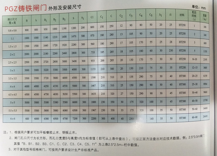 鑄鐵閘門有方形、圓形兩種。鑄鐵閘門一般由門葉和門框兩部分組成,門體和門框的材料為鑄鐵,一般整體鑄造、整體加工。 門體一般采用面板與加強肋的結(jié)構(gòu),面板可做平面或拱形。門體一般整體鑄造和機加工,但尺寸較大的采用分塊組成式可以根據(jù)客戶需要鑄造大小鑄鐵閘門。PGZ型鑄鐵閘門的尺寸與安裝。