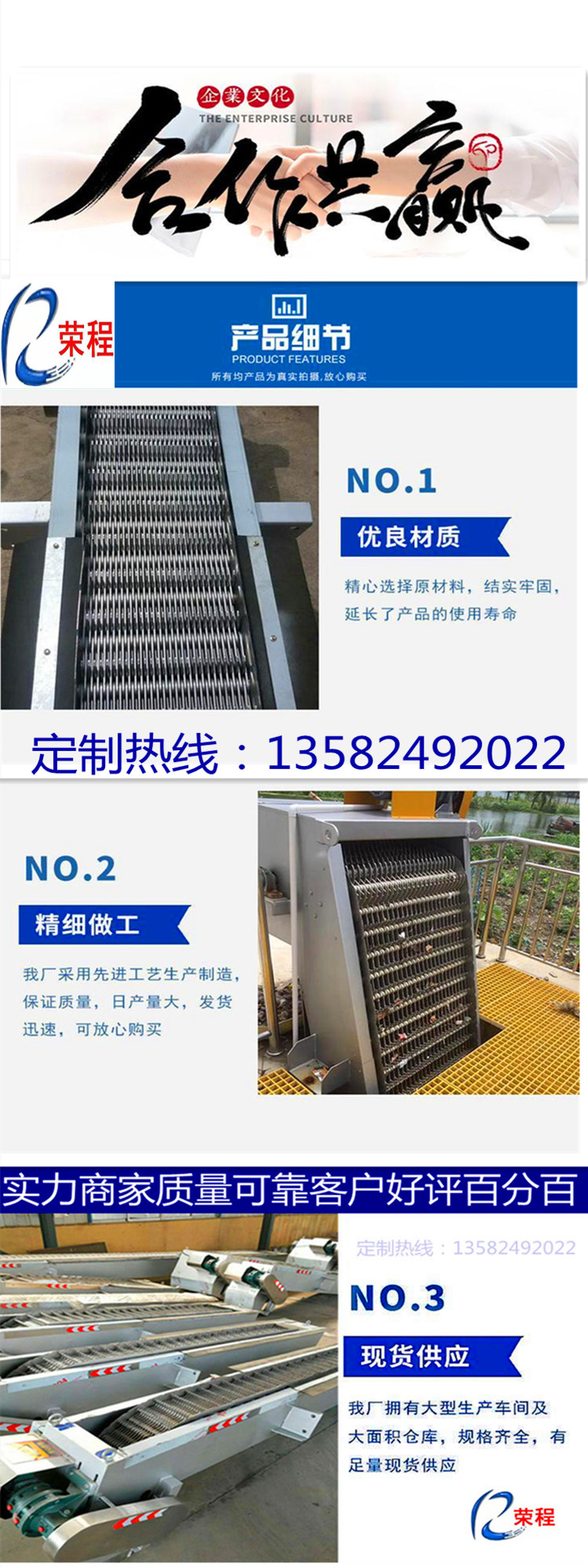 1.齒耙柵條后下行,柵條前上行撈渣,不會將柵渣帶入水下,撈渣徹底。