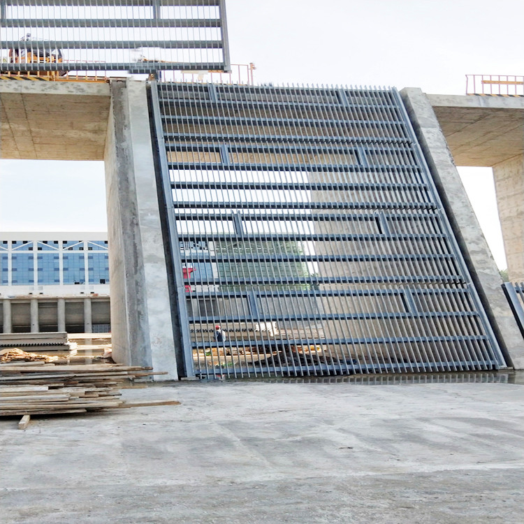 攔污柵一般設(shè)在設(shè)在進(jìn)水口前,用于攔阻水流挾帶的水草、漂木等雜物(一般稱(chēng)污物)的框柵式結(jié)構(gòu)。攔污柵由邊框、橫隔板和柵條構(gòu)成,支承在混凝土墩墻上,一般用鋼材制造。柵條間距視污物大小、多少和運(yùn)用要求而定。
