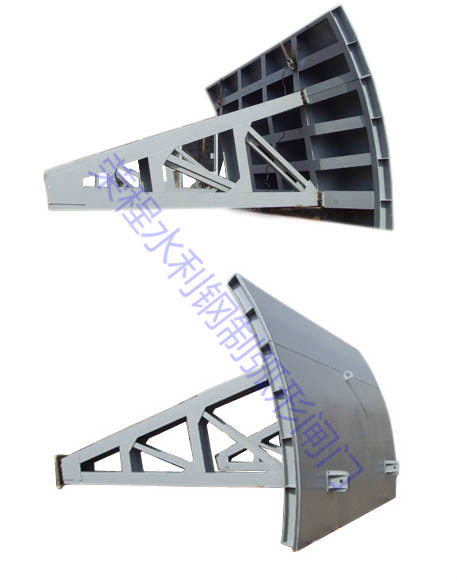 弧形閘門是擋水面為圓柱體的部分弧形面的閘門。其支撐臂的支撐鉸鏈位于圓的中心,當(dāng)閘門打開和關(guān)閉時,閘門圍繞支撐鉸鏈旋轉(zhuǎn)。弧形閘門由旋轉(zhuǎn)門體、內(nèi)嵌構(gòu)件和啟閉設(shè)備三部分組成�;⌒伍l門由于啟閉力小,水力條件好,在各種水路中廣泛用作工作閘門。